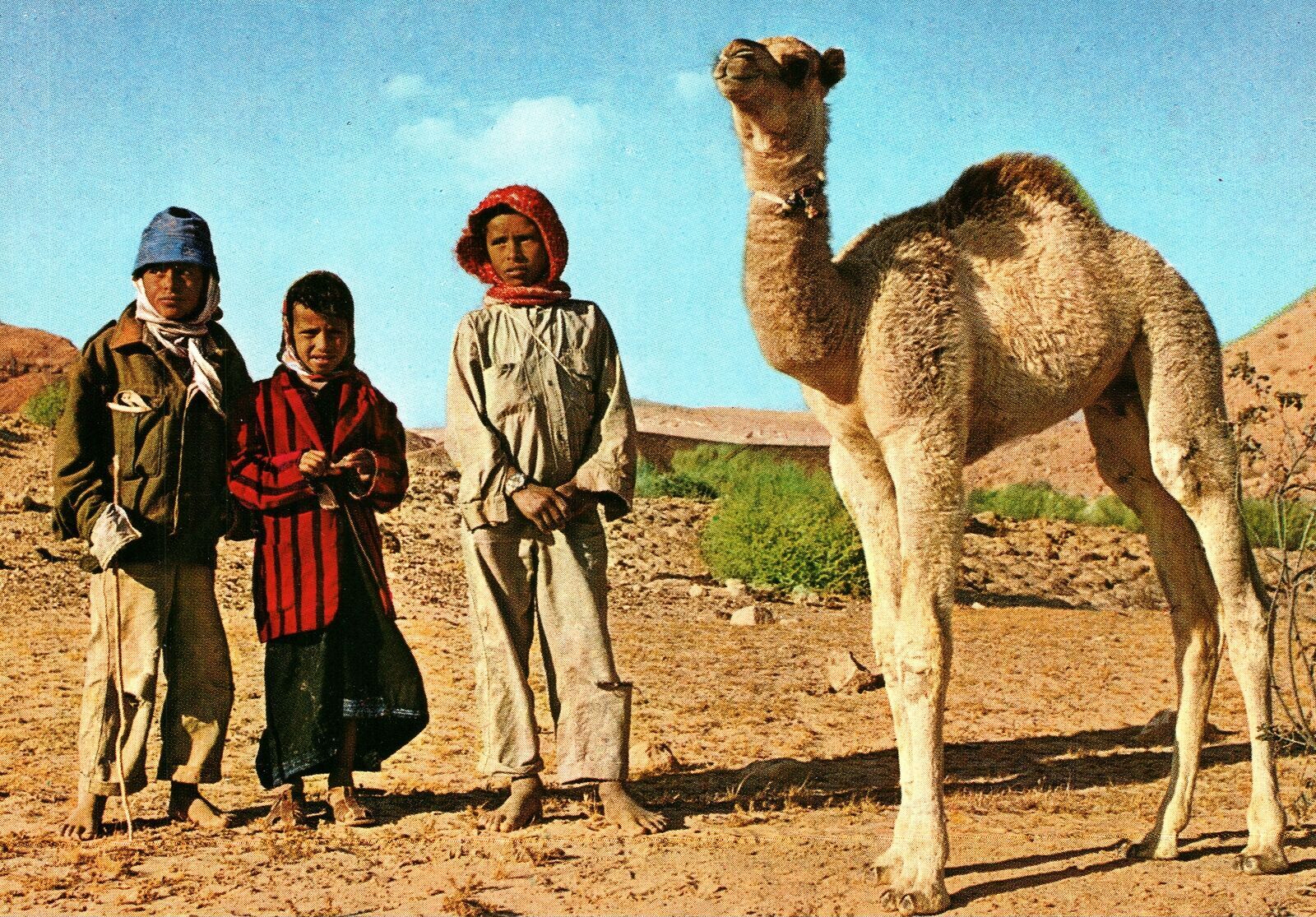 CONTINENTAL SIZE POSTCARD ARAB CHILDREN WITH A YOUNG CAMEL