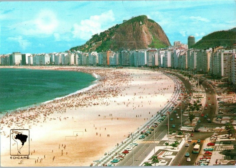 Copacabanas Beach Rio De Janeiro Brasil Postcard Posted 1973
