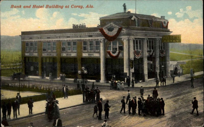 Corey AL Bank & Hotel Street Scne c1910 Postcard