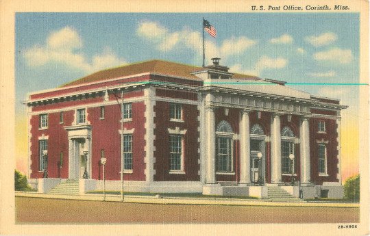 Corinth, Mississippi Post Office, Linen Postcard Unused