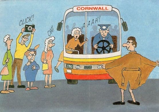 Cornwall Bus Flasher Streaker Risque Adult Transport Comic Postcard