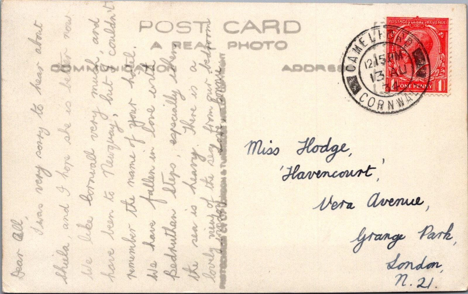 Cornwall Postcard - Tintagel, Rocky Valley XT255Publisher: Photochrom - Real PhotoPostcard size: Standard. Posted in 1934Postcard defect(s): Slight curved crease at the left hand edge Please also use the image magnifier to make your own assessment on the condition. Please ignore any lines caused by the scanner.When possible all of our postcards will be posted to you inside a collectable plastic postcard sleeve and a board backed envelope which will be marked 'Please do not bend'.Any 'Mo's Postcards' watermark does not appear on the actual postcard'.
