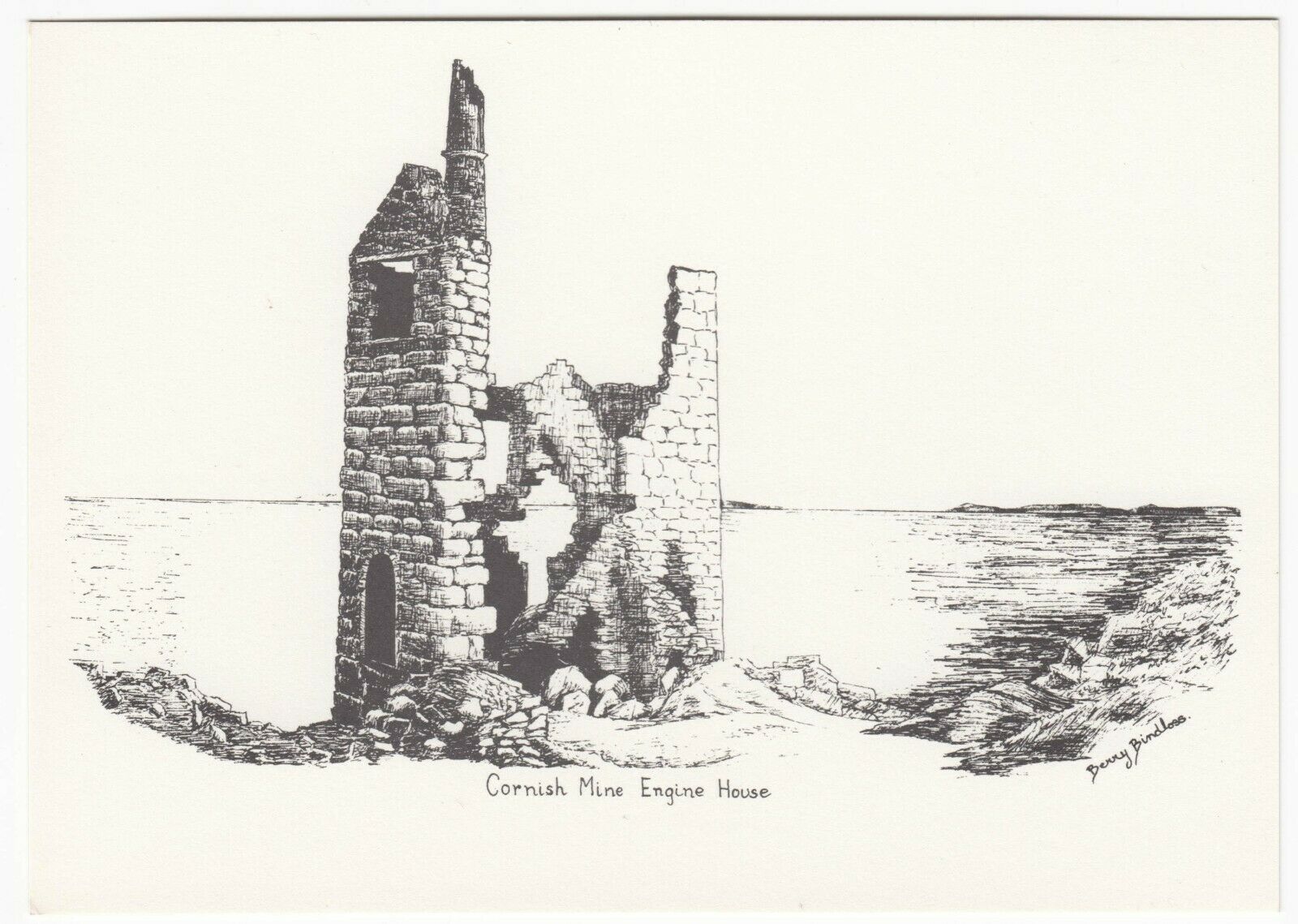 Cornwall; Unused Cornish Mine Engine House Postcard, Artist - Berry Bindloss