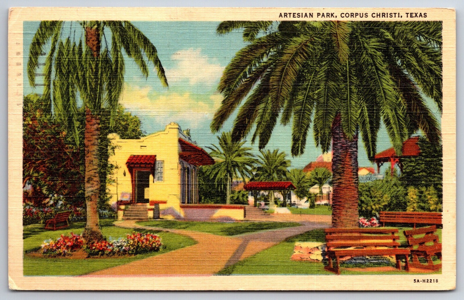 Corpus Christi Texas~Artesian Park & Palm Trees~Vintage Linen Postcard