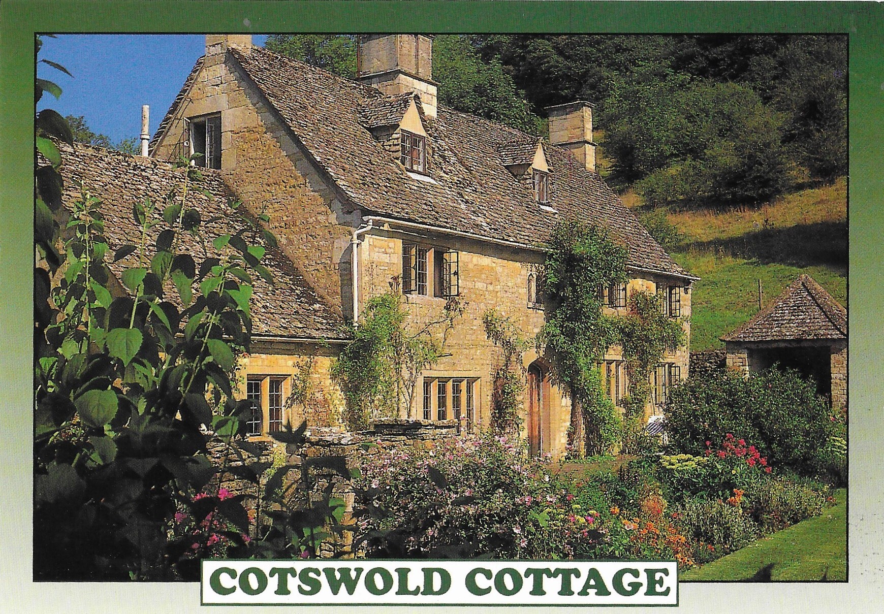 Continental size (4 by 6 inches) Cotswold Cottage, England, United Kingdom. The Cotswolds run through six English Counties