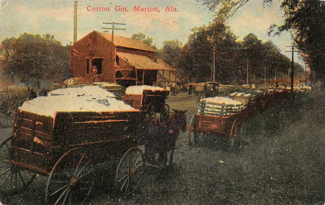 COTTON GIN MARION ALABAMA POSTCARD (c. 1910)