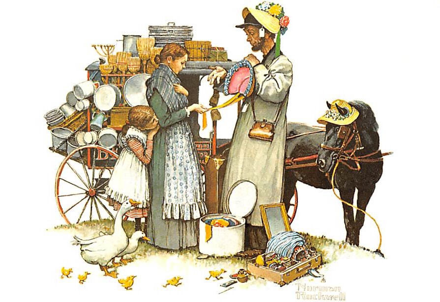 Country Pedlar - Norman Rockwell Grade: 1 Category: Modern Postcard, Continental Size, Approx 4 in x 6 in (10 cm x 15.25 cm) Product Size: Continental size: 4X6 inches (10.5 cm x 15 cm) Grading Scale: Grade 1 ... Read More