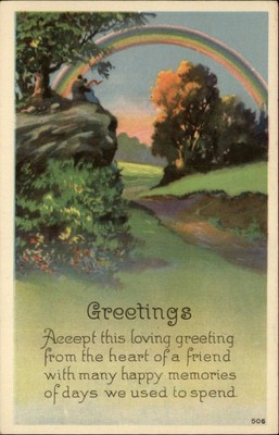 Couple on Ledge Rainbow Poem Greeting c1910 Postcard