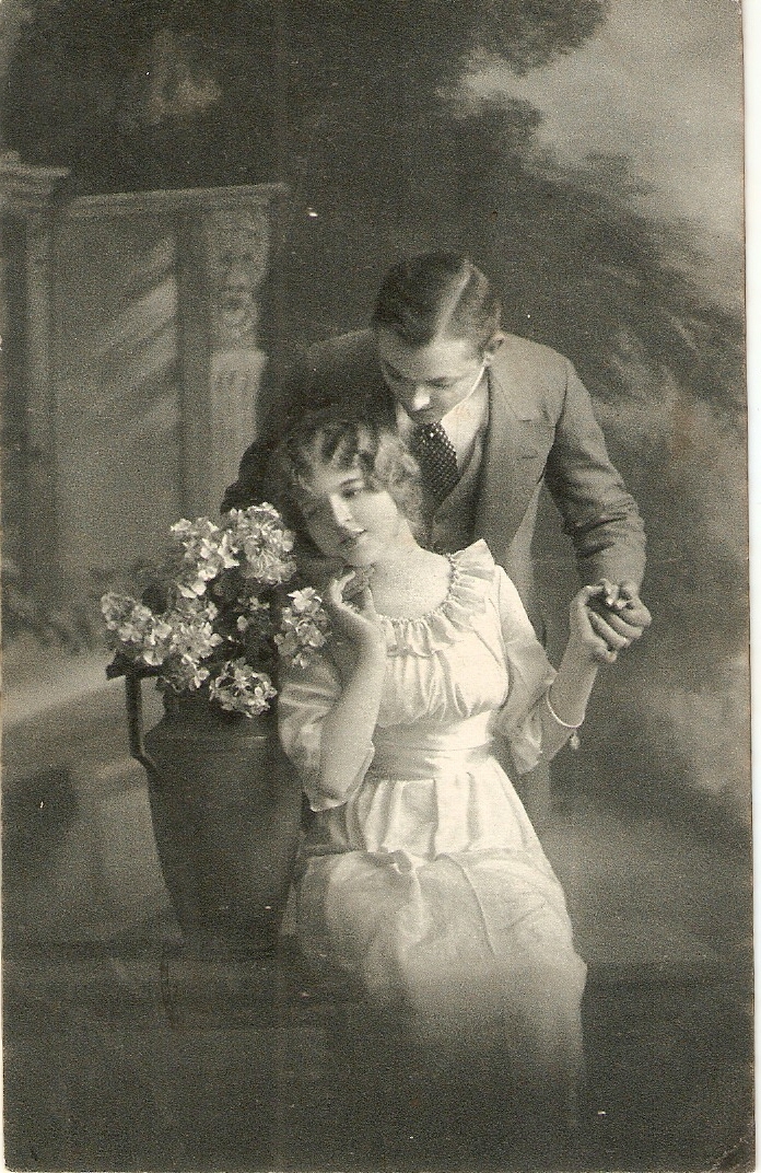 "couple. Romance with flowers" old vintage german postcardPublisher: LOGO I CANNOT IDENTIFY