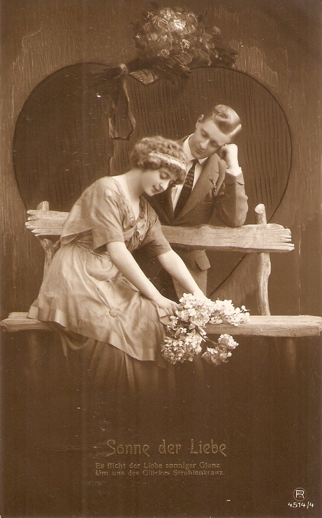 "couple. Romance with flowers" old vintage german postcard