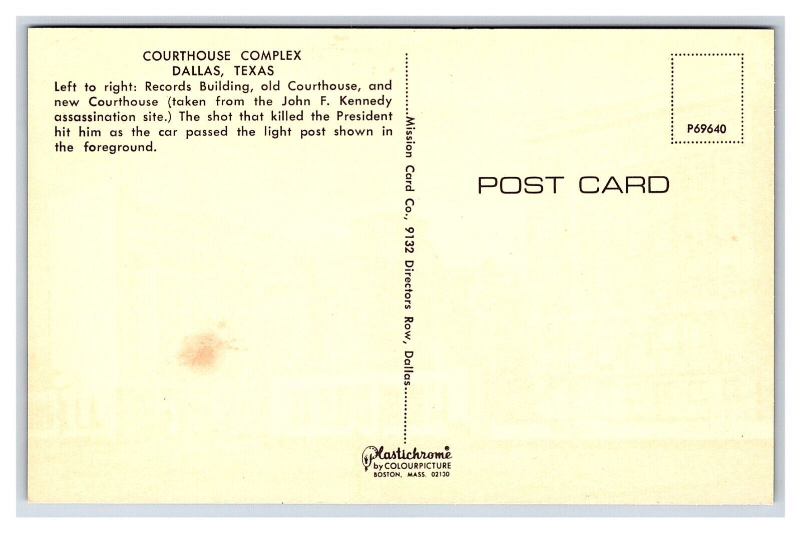 Courthouse Complex Dallas,TexasJohn F. Kennedy Assassination SiteVintage Standard View PostcardPostcard Enclosed in Clear SleevePlaced Between 2 Pieces of CardboardShipped USPS First Class MailNon Machinable-Marked Do Not BendCombined Shipping AvailableReasonable Offers Always ConsideredWATCH This Item For Possible DiscountPlease Look At My Hip Store Listings For More Sale Items