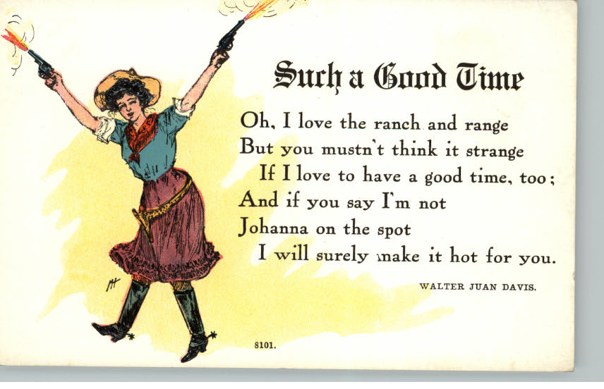 Cowgirl w Blazing Guns & Poem c1910 Postcard
