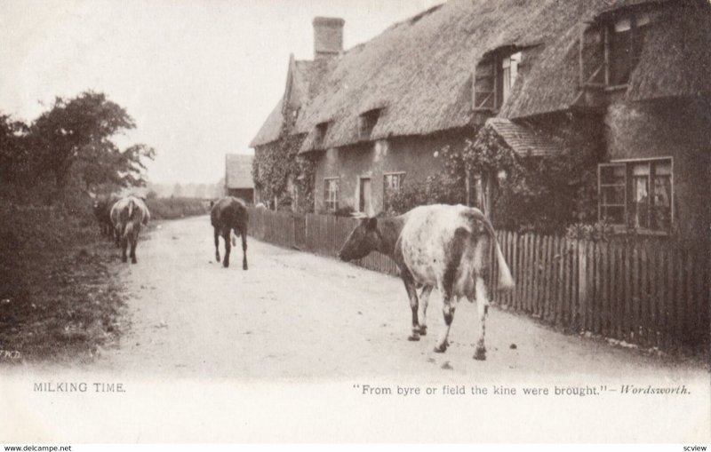 Cows ; Milking Time , 00-10s :: Postcard , 3.5 by 5.5 , Litho