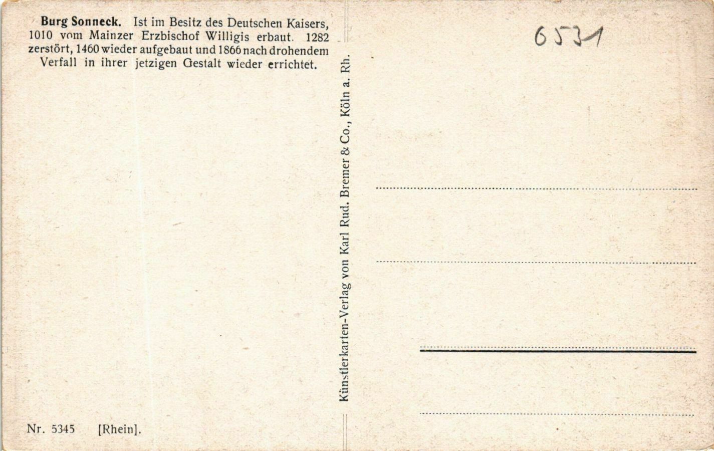 CPA AK Burg Sonneck GERMANY (1011407). RHEINLAND-PFALZ Non Voyagee. Unmailed. DC21235 Carte postale. Postcard.