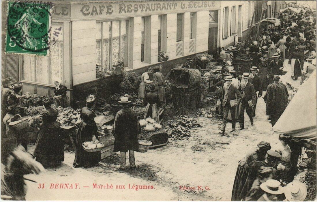 CPA BERNAY - Marché aux légumes (148442). Carte postale. Postcard.