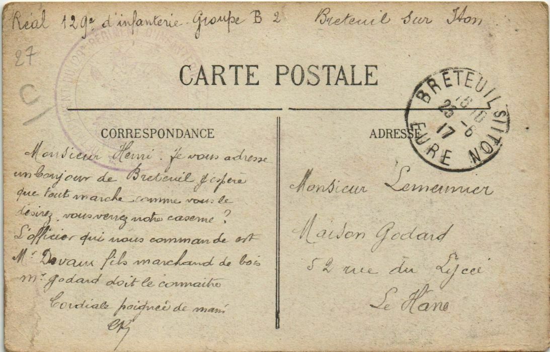 CPA BRETEUIL La Caserne (1160543). Tear Voyagee. Mailed. DC18250 Carte postale. Postcard.