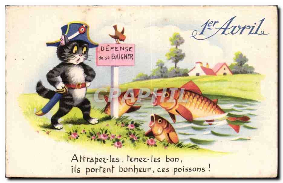 CPA Fantasy Cat Poisson April 1st Easter Easter