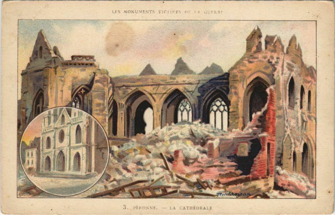 CPA Guerre PÃRONNE Cathédrale (25012) Bombing, Bombardement, Ruins, Ruines, War, Guerre, Military Somme Europe France Dc5406