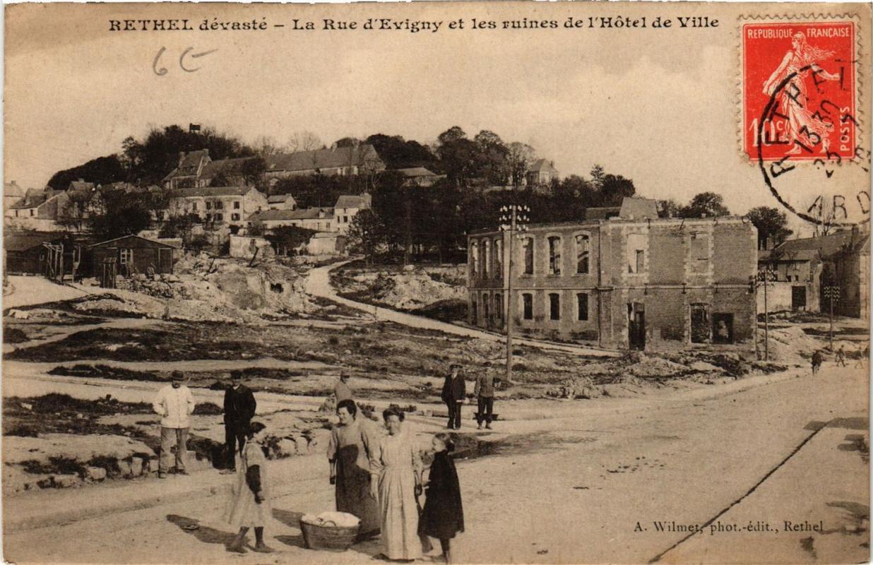 CPA RETHEL La Rue d'Evigny et les ruines de l'Hotel de Ville (646644). DC3709 Carte postale. Postcard.