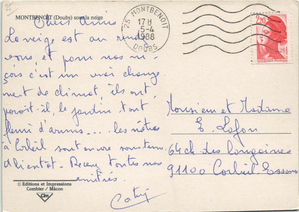 Condition: UsadoCPM MONTBENOIT sous la Neige (1196762). Voyagee. Mailed. DC21022 Carte postale. Postcard.