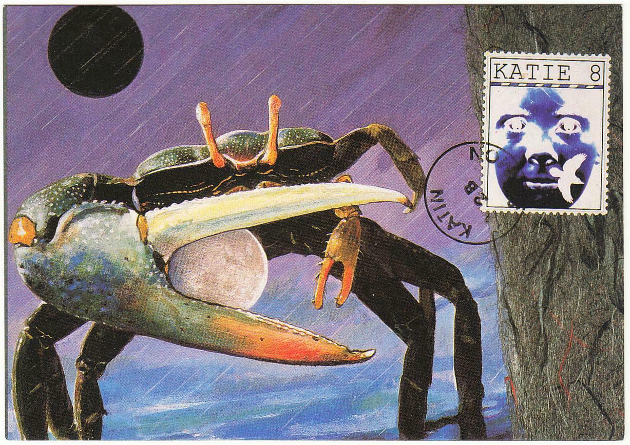 Crab and Moon by Nick Bantock Collage Art Postcard