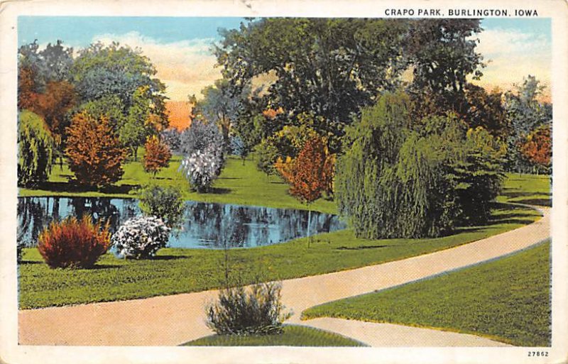 Crapo Park Burlington, Iowa Postcard - 1935 Grade: 4 Size: R - Regular size: Approx 3 1/2 X 5 1/2 inch (9 cm X 14 cm) Grading Scale: Grade 1 = Perfect corners Grade 2 = Very Minimal corner wear, no creases Gra ... Read More