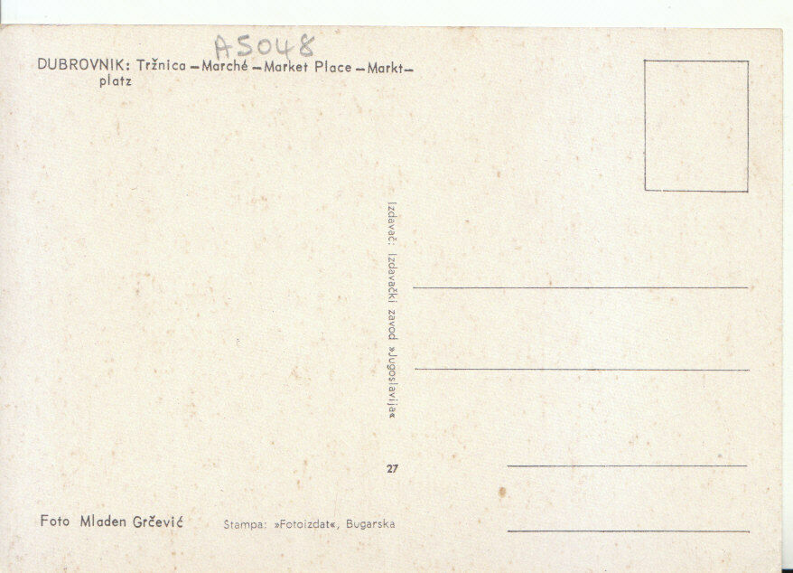 Condition: Slight knock to some corners Mo's Postcards Postcard Description: Croatia Postcard - Dubrovnik - Trznica - Marche Genealogy: Defect(s) Slight knock to some corners Postage & Payment: For U.K residents t ... Read More