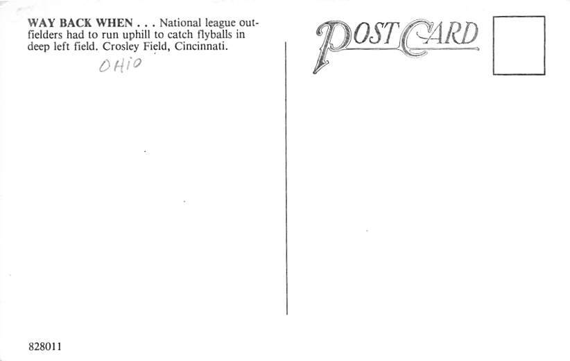 Crosley Field Stadium Baseball Players View Postcard Backing