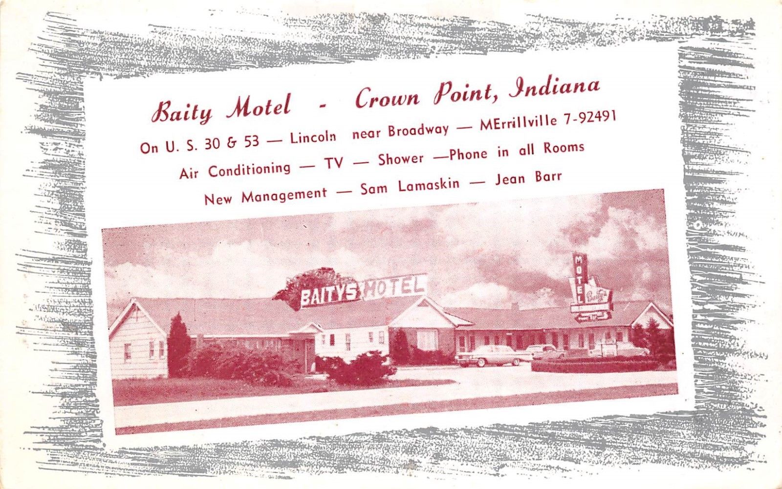 Crown Point Indiana 1950s Postcard Baity Motel