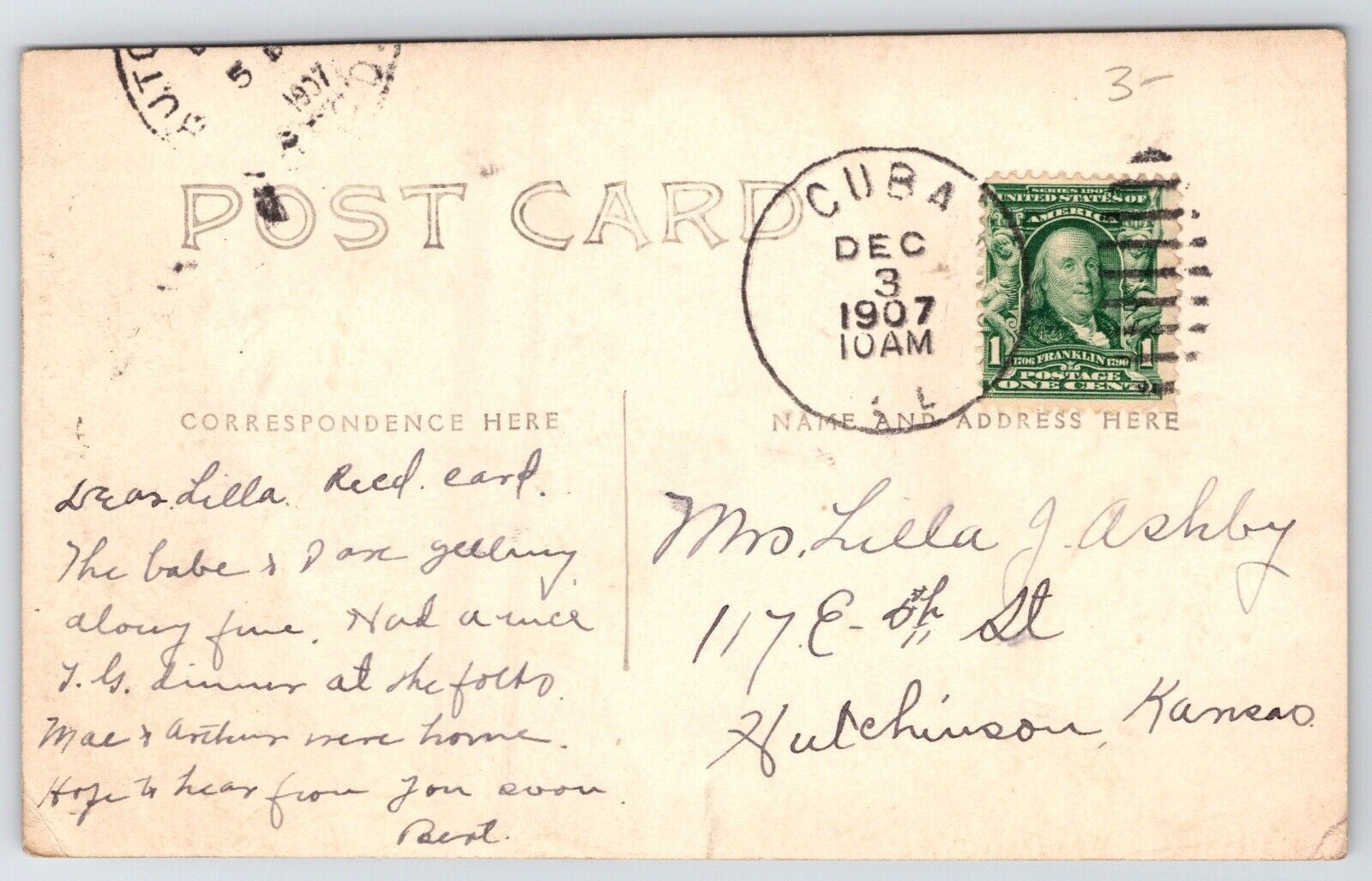 Cuba Illinois~United Methodist Episcopal Church~Belltower~Door Columns~RPPC 1907
