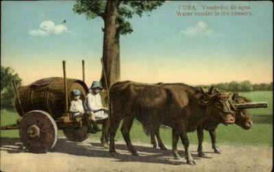 CUBA Water Vendor Boys Ox Cart c1910 Postcard