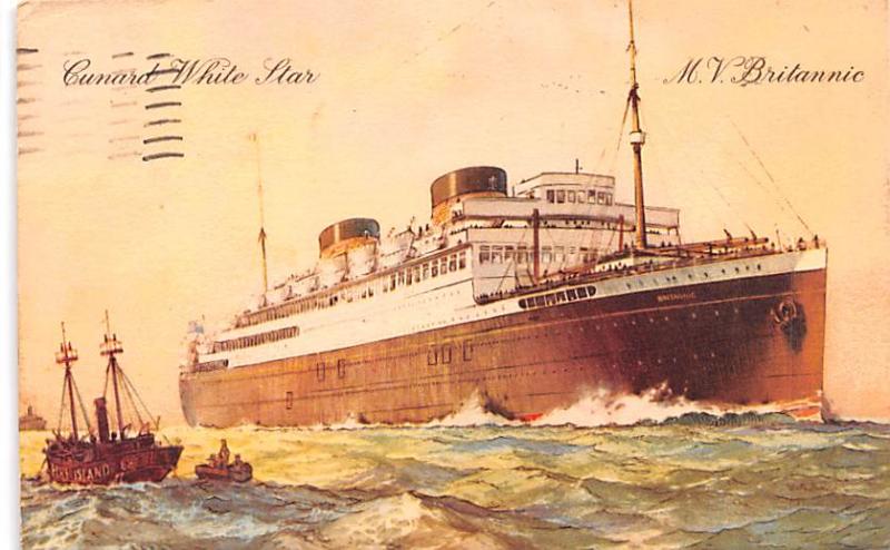 Cunard White Star, MV Britannic Ship Postcard Postal Date: 1936 Grade: 2 Size: Regular Size Postcard - approximately 3 1/2 inch x 5 1/2 inch (9 CM x 14 CM) Grading Scale: Grade 1 = Perfect corners Grade 2 = V ... Read More