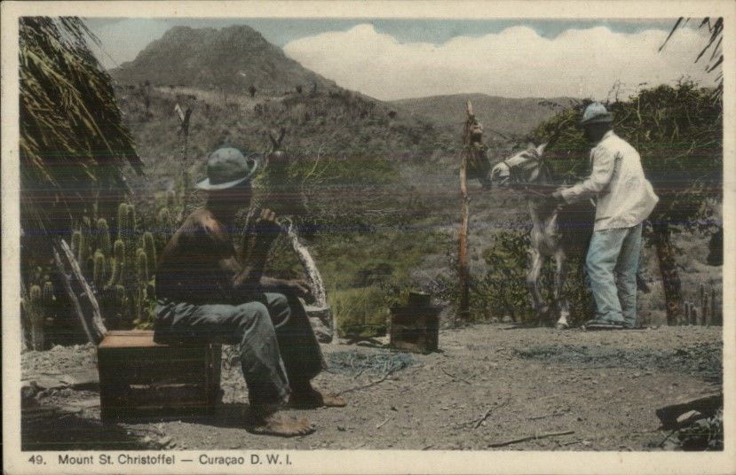 Curacao DWI Native Black Men Mounta St. Christoffel c1910 Postcard EXC COND