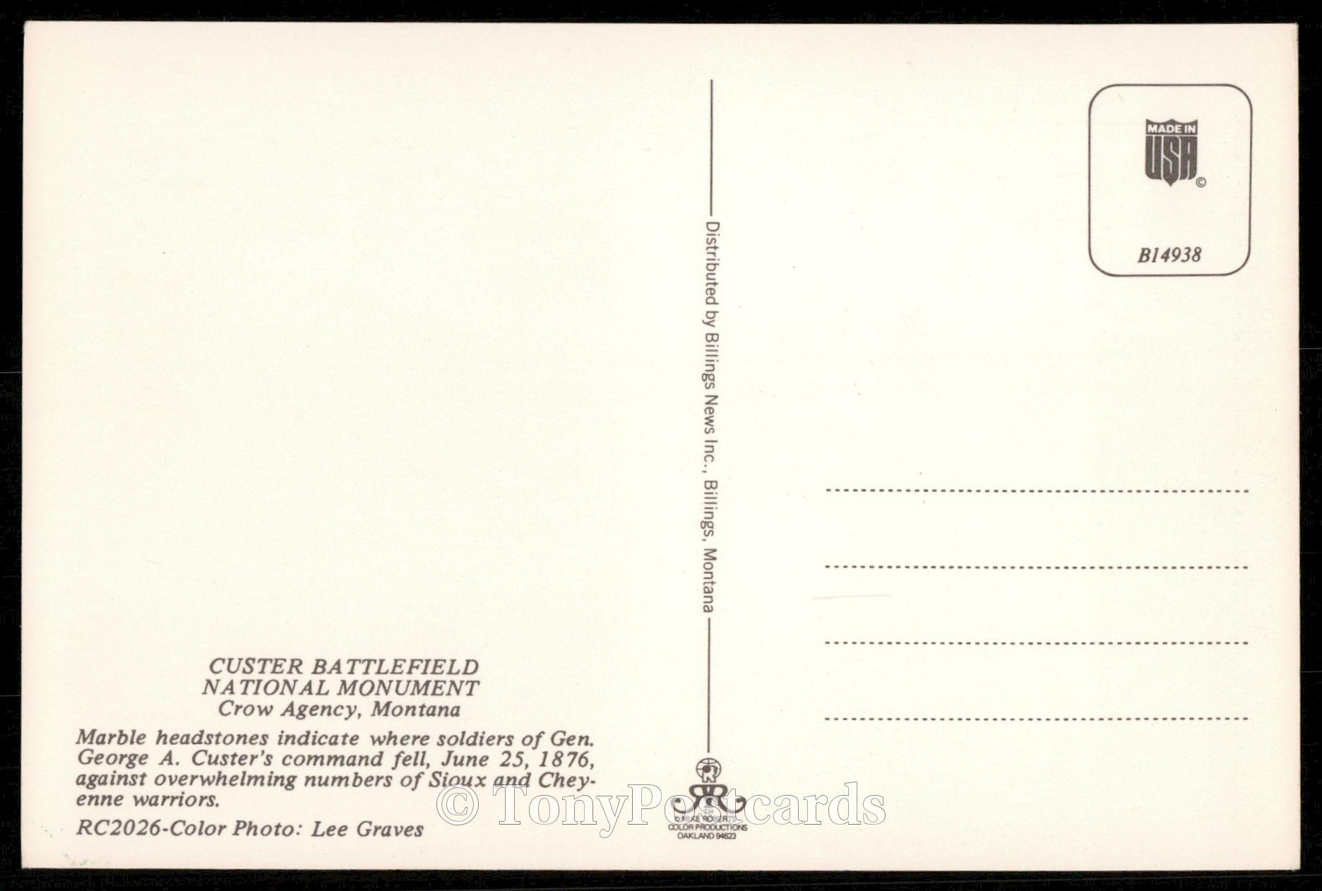 Title: CUSTER BATTLEFIELD - CROW AGENCY, MONTANA Condition: See scans