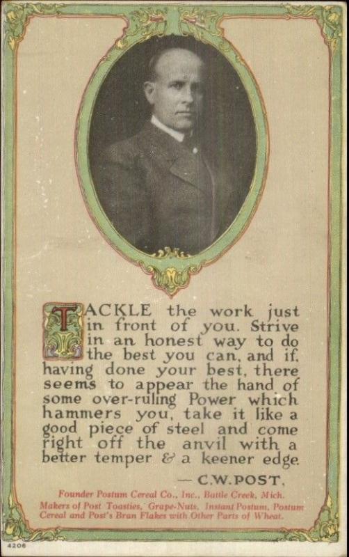 CW Post Quote on Work/Labor Postum Cereal Co Battle Creek MI Postcard