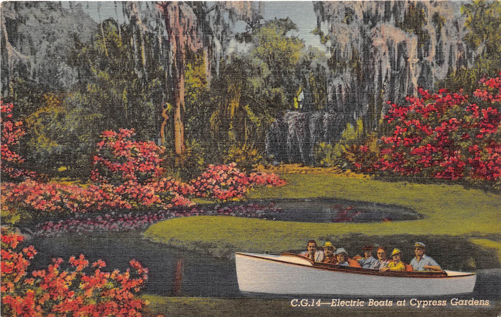 Cypress Gardens Florida 1940s Postcard Electric Boats
