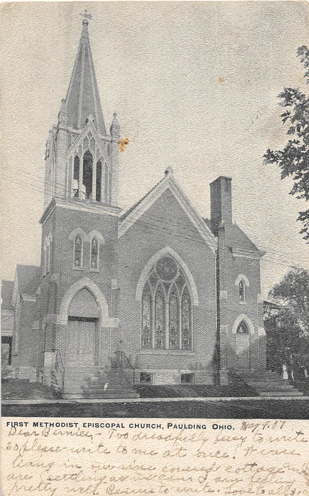 D55/ Paulding Ohio Postcard 1907 First Methodist Church Building