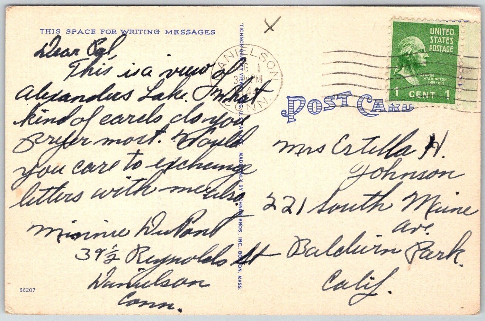 Danielson Connecticut 1944 Postcard Boats