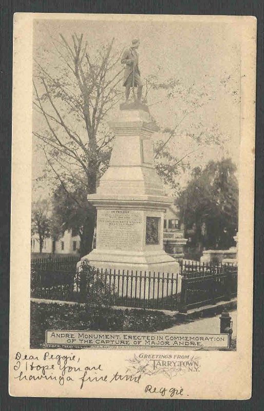 DATED 1906 PPC WHITE PLAINS NY MAJOR ANDRE MONUMENT TO COMMEMORATE HIS CAPTURE