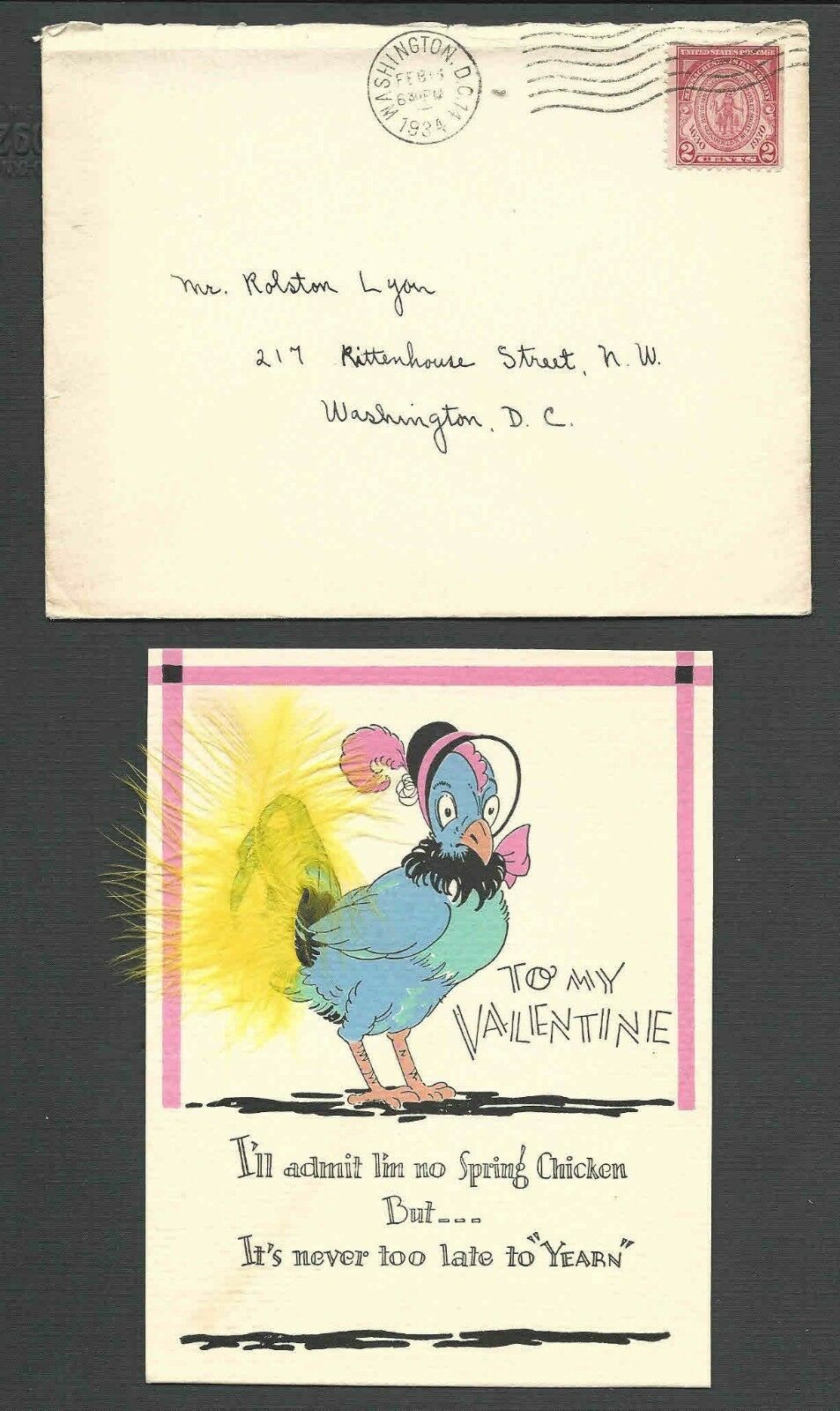 DATED 1934 PPC WASH DC VALENTINE CARD UNSIGNED W/ORGINAL ENVELOPE