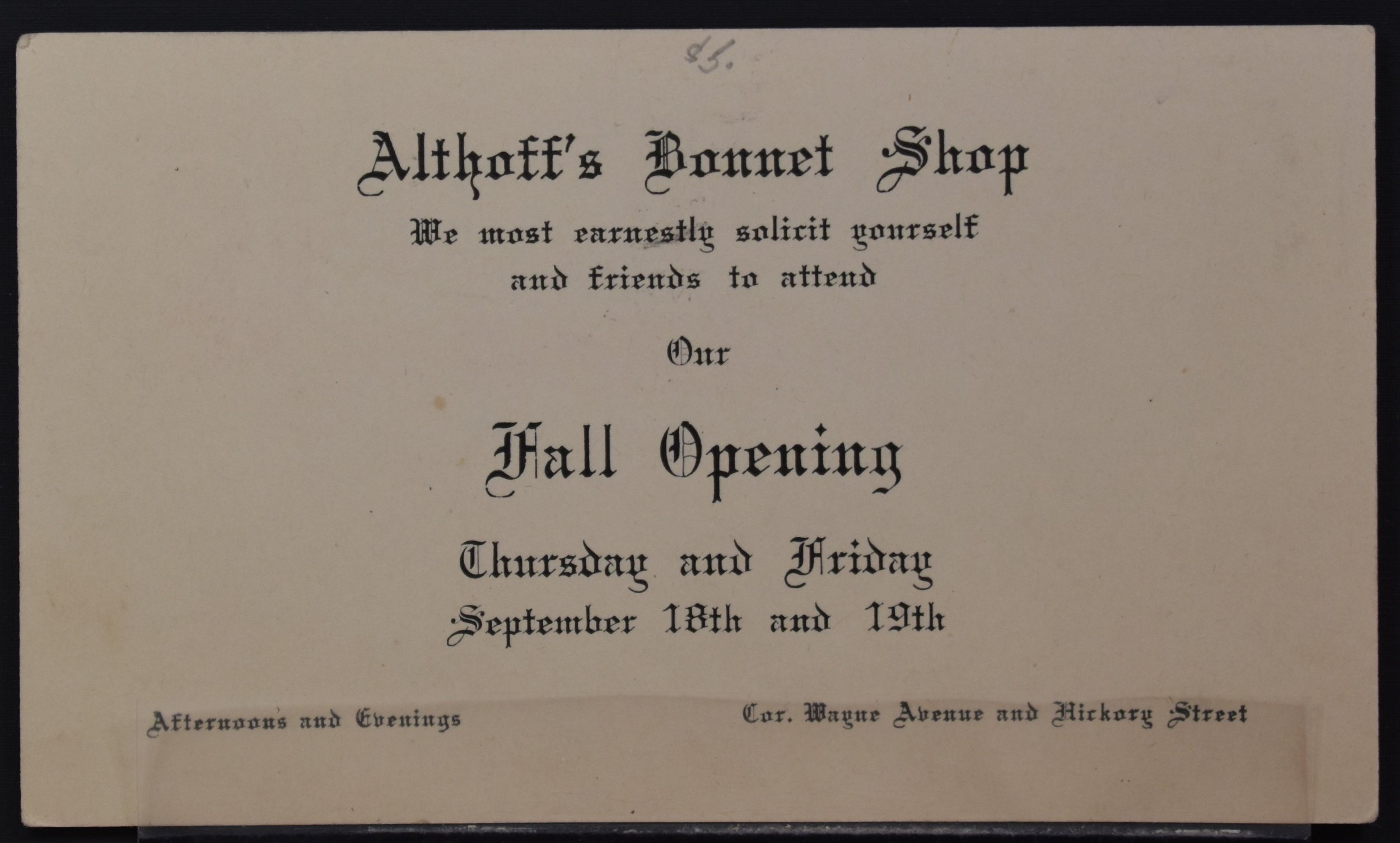 Dayton, OH - Althoff's Bonnet Shop, Fall Opening - 1913