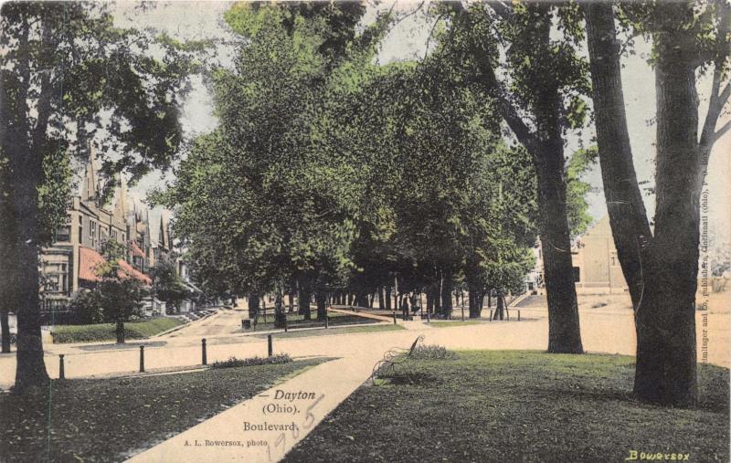 DAYTON OHIO BOULEVARD~TREE LINED~BOWERSOX PHOTO POSTCARD 1900s