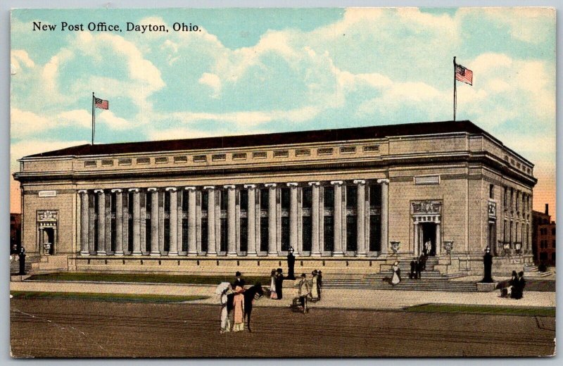 Dayton Ohio c1910 Postcard New Post Office Street Scene Flags