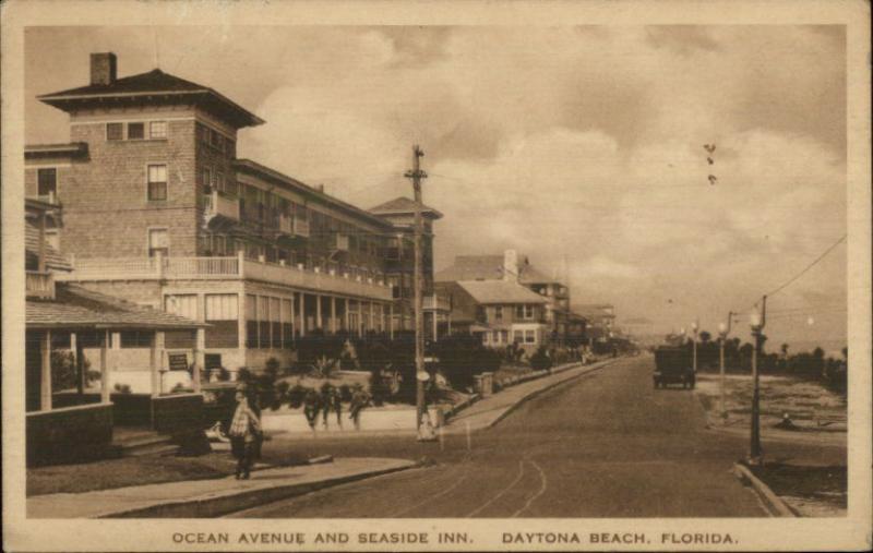 Daytona FL Ocean Ave & Seaside Inn c1920 Postcard
