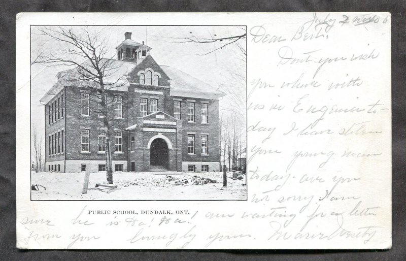 dc510 - DUNDALK Ontario 1906 Public School. Postcard