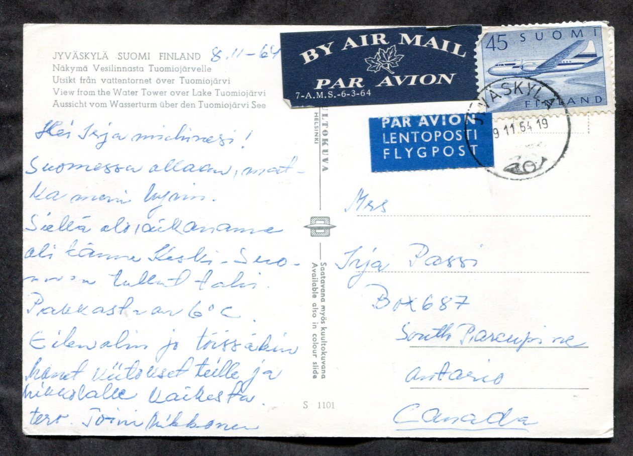 dc534 - FINLAND Jyvaskyla 1964 Postcard