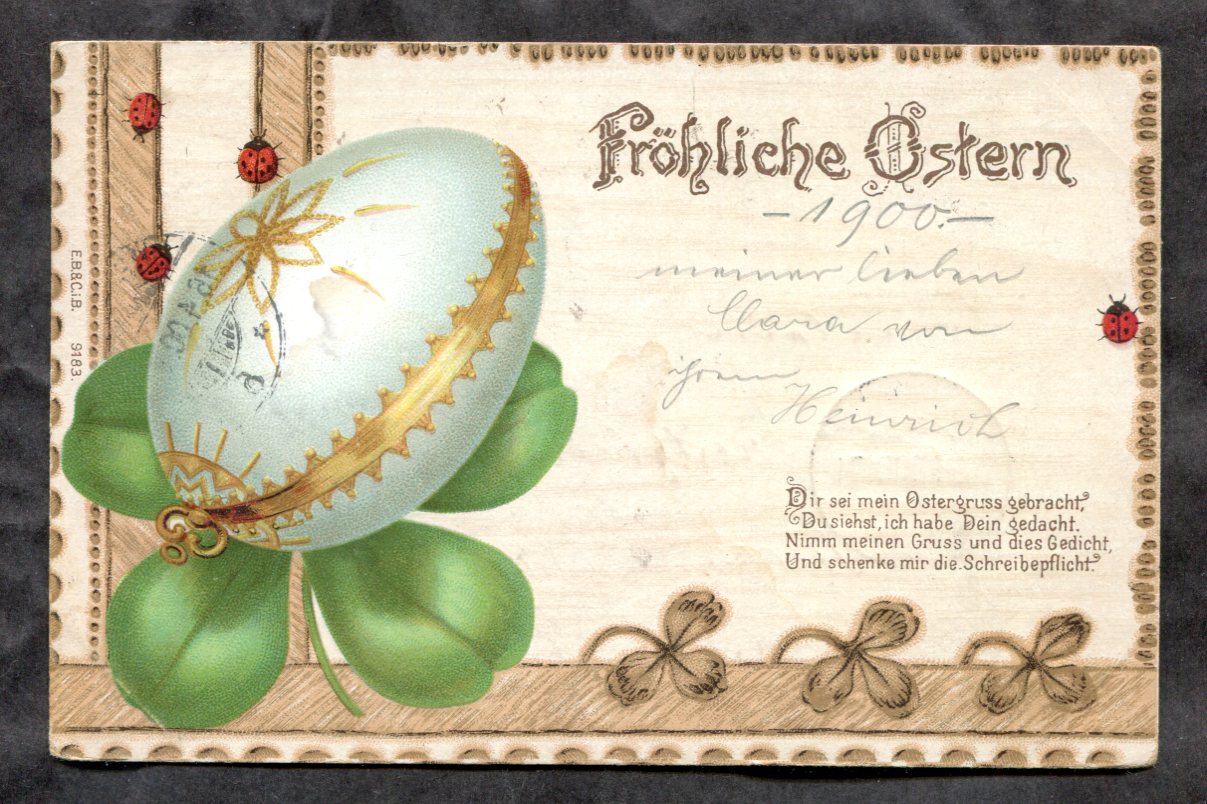 dc670 - Germany EASTER 1900 Colored Egg & Clover. Very Nice Postcard