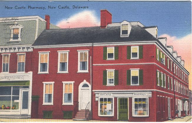 DE NEW CASTLE NEW CASTLE PHARMACY 1962 postcard