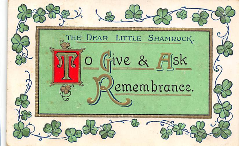 Dear Little Shamrock St. Patrick's Day Postcard 1910,