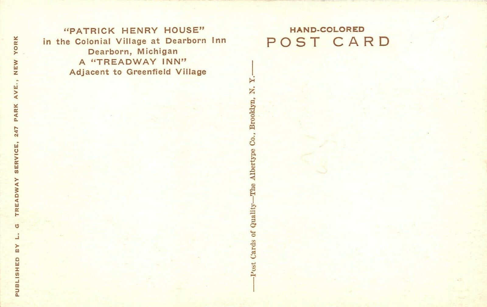 Dearborn Michigan 1930s Hand Colored Postcard Patrick Henry House Treadway Inn